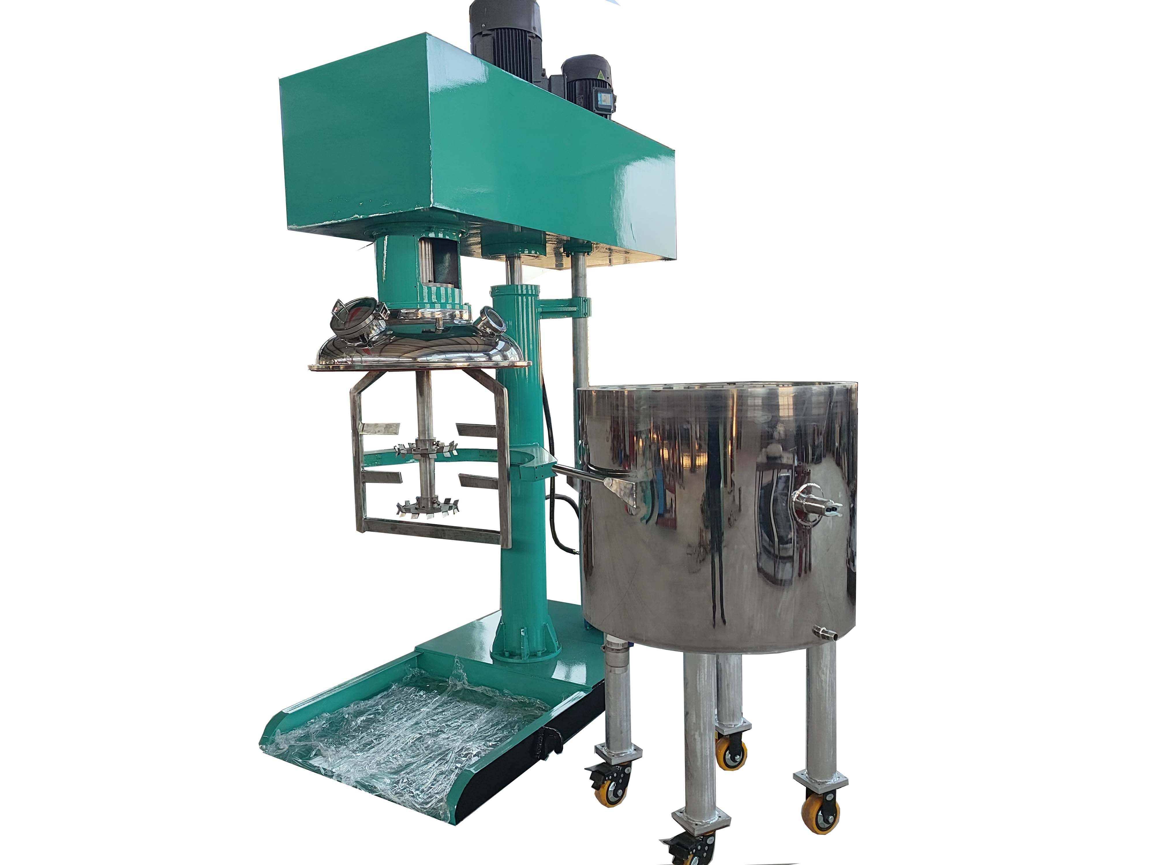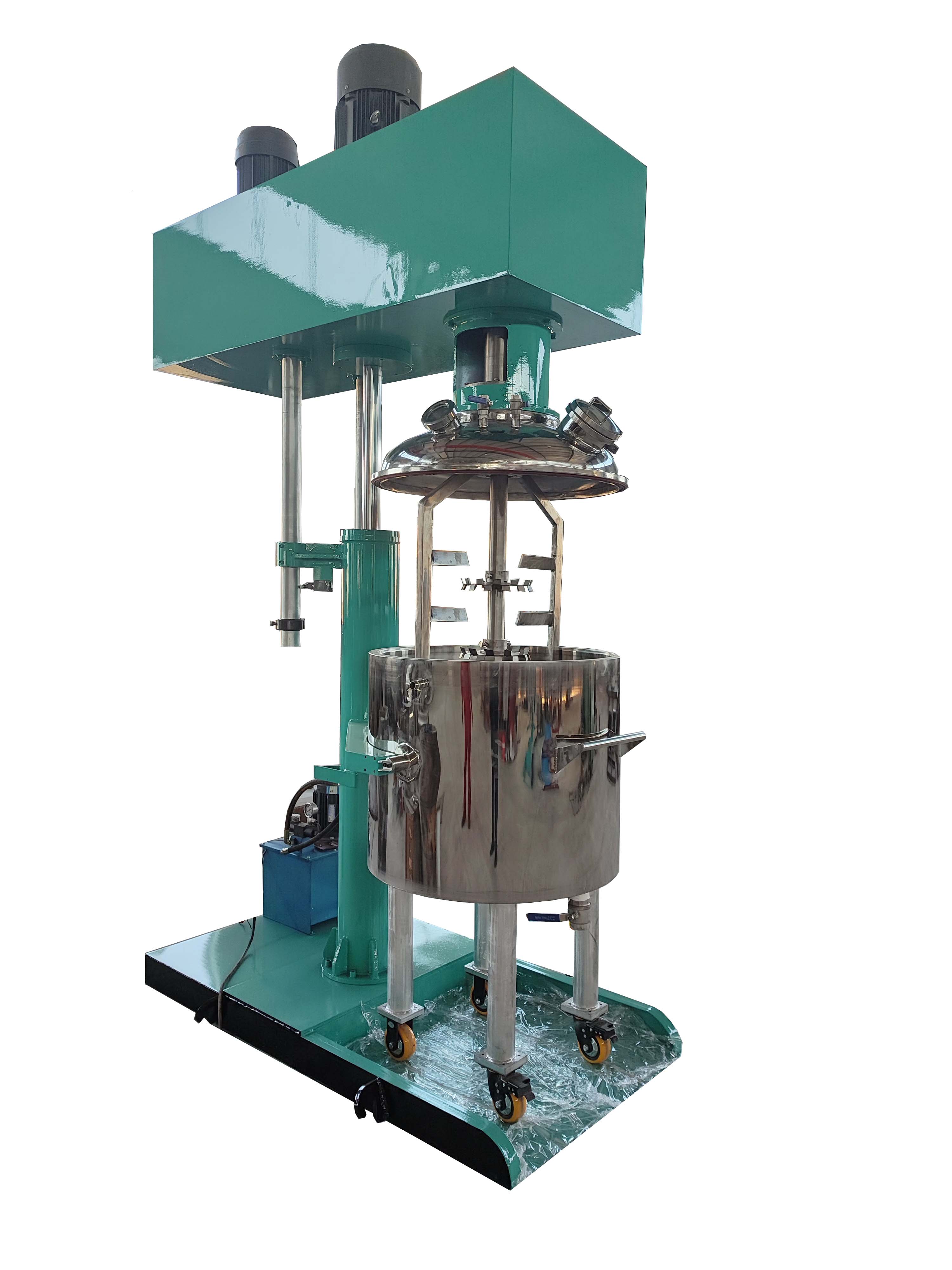 高、低速雙動力設計;匹配的動能驅動高速分散器高速旋轉使攪拌缸內的液體物料呈現(xiàn)滾動的環(huán)流,并產生-定范圍的旋渦,物料同時受到較強的剪切和沖擊,配合帶有活動刮壁的低速攪拌器,把粘附在容器壁上的物料推向高速分散器的做功范圍,使兩種或兩種以上的物料很快得到分散、混合,使產品無色差、均勻度好、 透明度高??蚴綌嚢杵髦饕鉀Q拌合及物料粘壁問題,物料分散主要由中心分散器完成,從而各取所長,避其所短,使攪拌更快速,效率更高,混合更充分。根據(jù)工藝情況,高速實心軸與低速空心主軸間以及低速空心主軸與機架間均可安裝機械密封,從而實現(xiàn)真空作業(yè)。