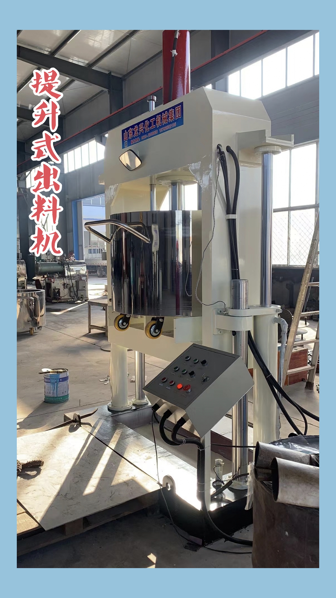 液壓出料機是與本廠出產的高粘度強力攪拌機相配套的出料灌裝設備。它能將相應容積攪拌桶內的油墨、膠粘劑、硅膠等高粘度物料通過壓料盤施壓 使物料盤上出料口或攪拌桶下出料口出料,從而實現(xiàn)對 物料各種形式的包裝