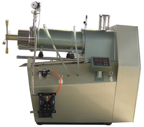 工作原理:轉(zhuǎn)子帶動研磨鋯珠做錐形螺旋運動,轉(zhuǎn)子與定子上的棒釘對進入錐形研磨腔的物料進行強力剪切,運動的鋯珠對物料進行強力研磨,該設(shè)備能在極高的流速下運行,全密閉連續(xù)式加工,研磨效率高,可靠性好。